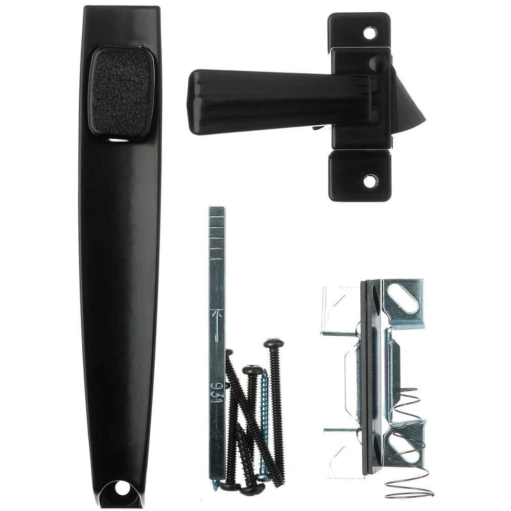 Wright Products Push Button Latch is designed for out-swinging wood or metal doors. The inside push latch “No Lock Out” feature eliminates accidental lock-outs for peace of mind. Install on standard 3/4 in. to 1-1/4 in. thick doors with 3-5/16 in. hole spacing. Contains two sizes of strike plates and shims to provide adjustment for varying backsets.