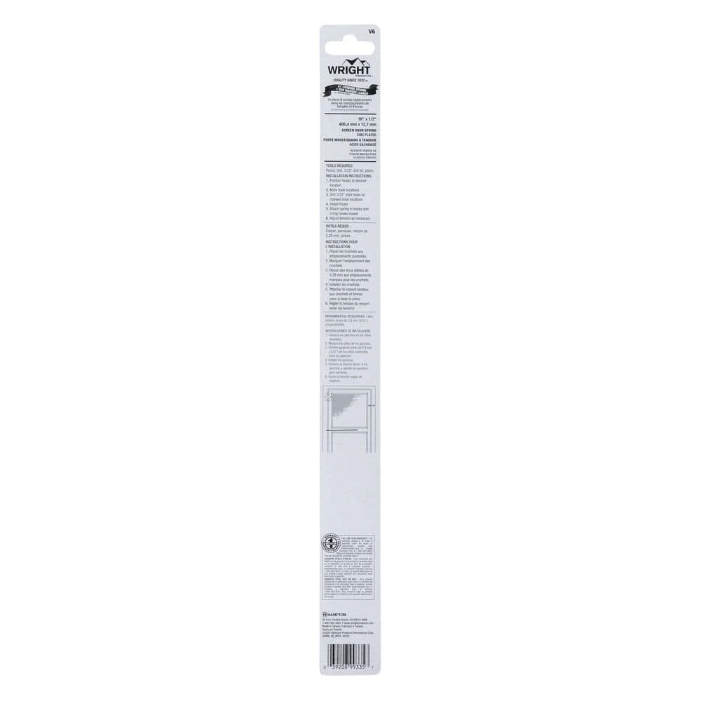 The Wright Products #6 Door Spring with Hooks is a replacement part for your screen door. It is recommended for medium screen doors. Replacing the spring and hooks for your screen door will increase the life of and enjoyment of your screen door.