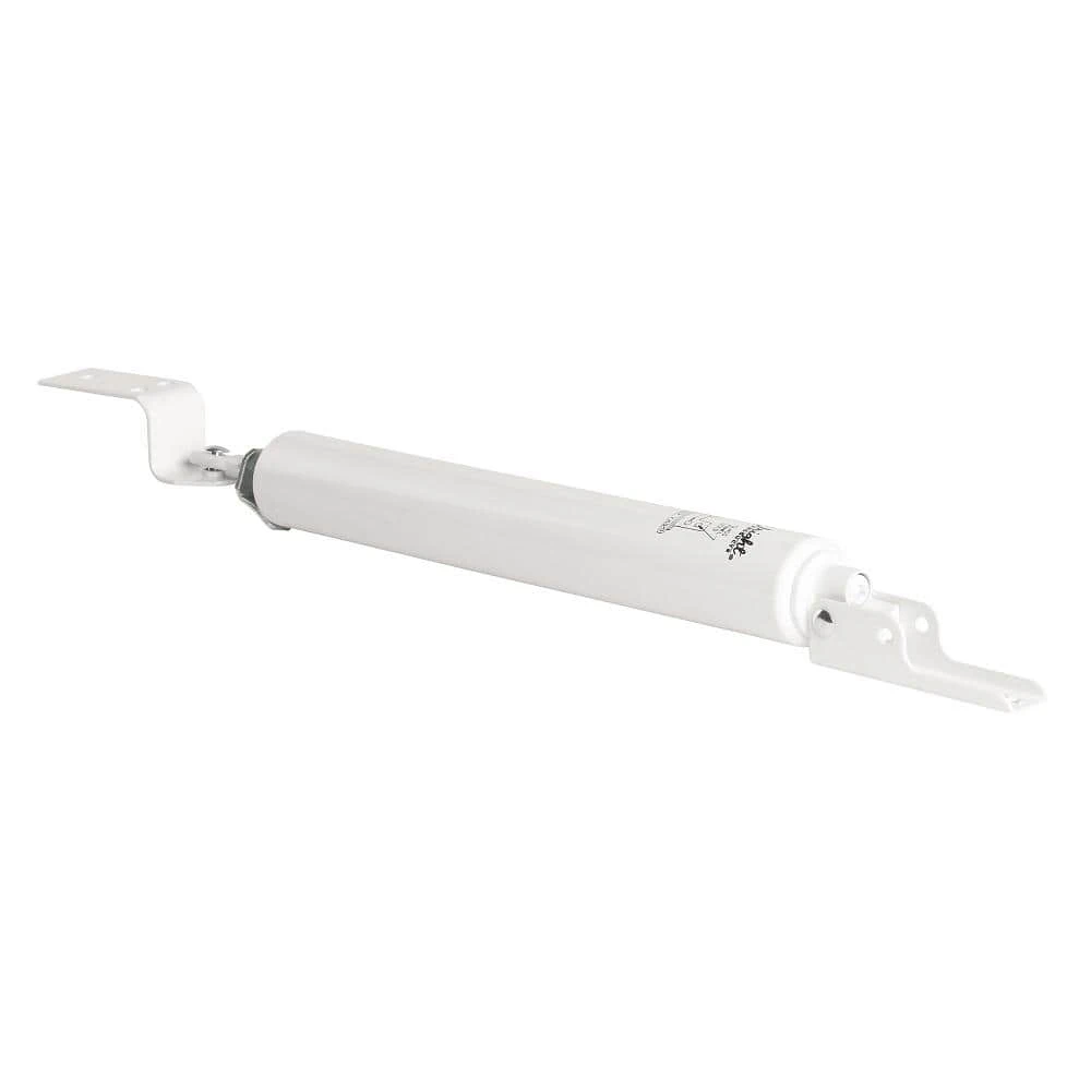 This is a light duty closer. It is recommended for light screen or storm doors only. It has a full 90° opening. It comes with an adjustable closing speed. A head jamb bracket is provided for mounting on the top of the door jamb. All installation hardware is included.