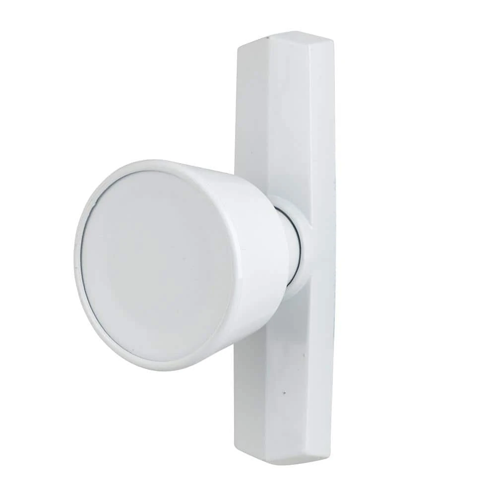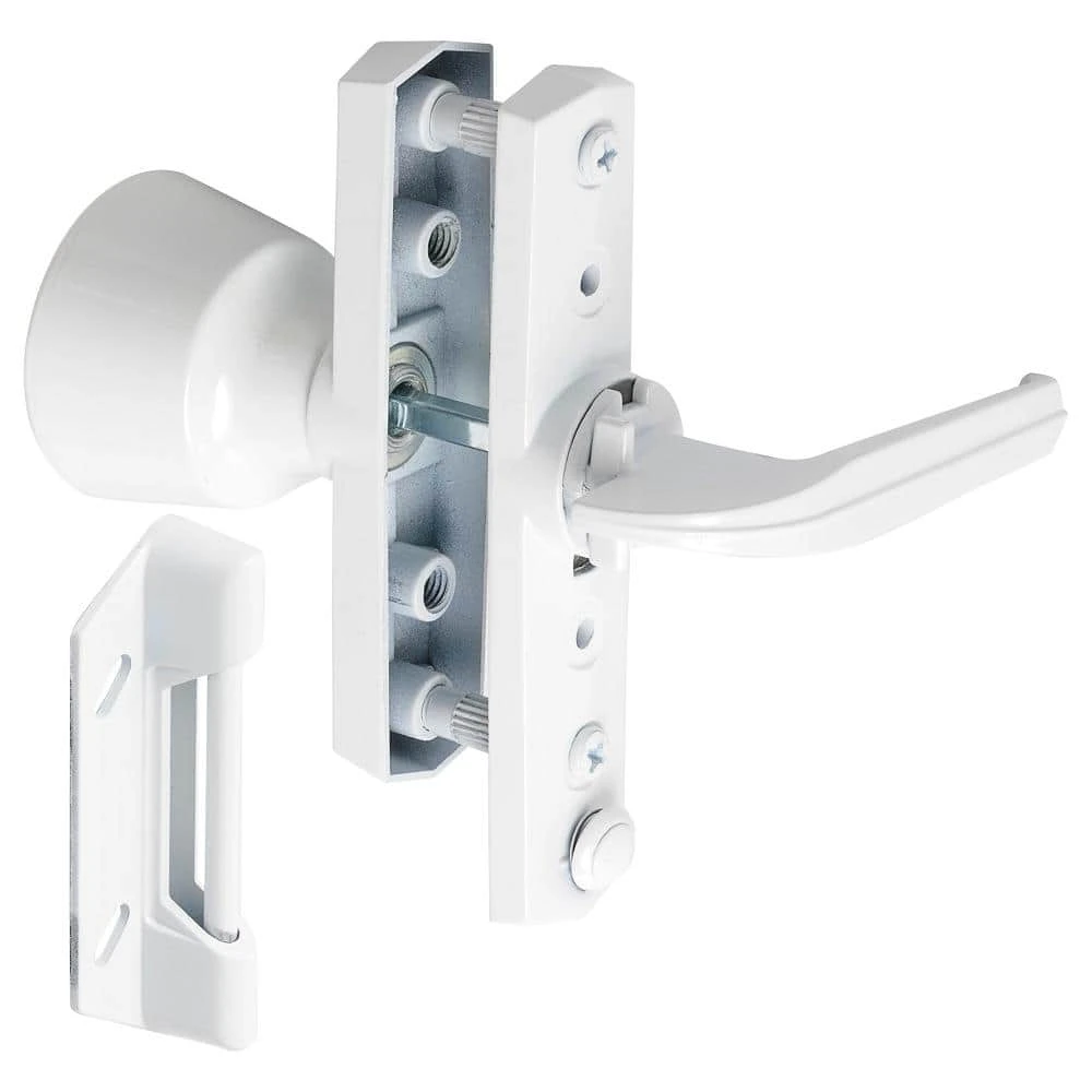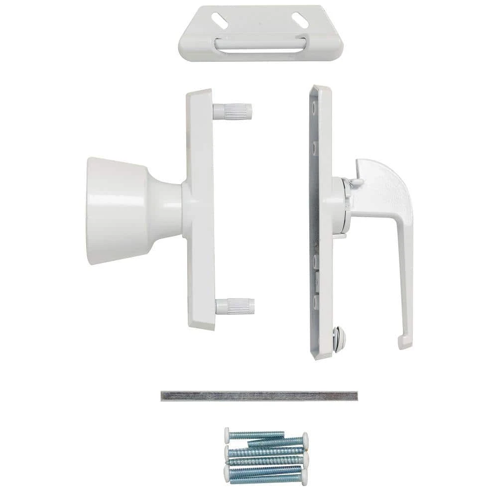 The White Universal Tulip Knob Latch is suitable for use with out-swinging doors. This knob latch can be installed in a 3 in. hole spacing. The knob latch comes with hardware for installation.